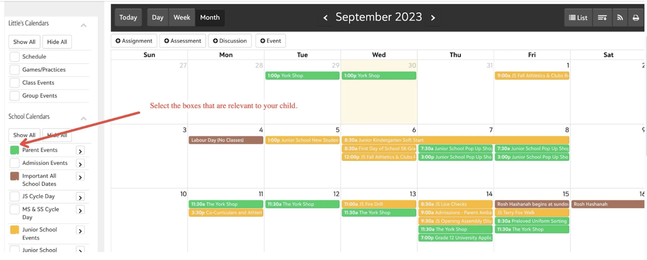 YorkNet has every calendar you might need to plan the school year for your family. In YorkNet and our weekly newsletters, we provide links to the detailed monthly calendar. Once logged into YorkNet, the “Calendars” button gives you the ability to view and filter all calendars, from sporting events to debate club.