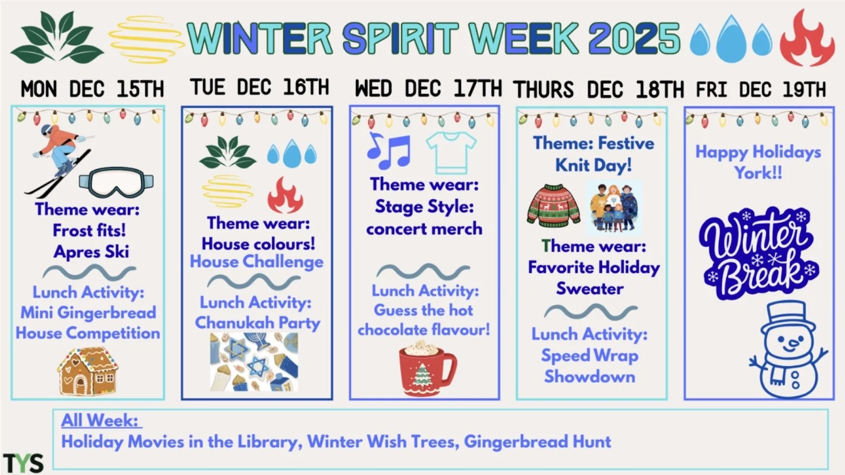 With daily casual-dress theme days, lunch-hour activities and a House “Chilly Challenge” Spirit assembly, there is much to look forward to.