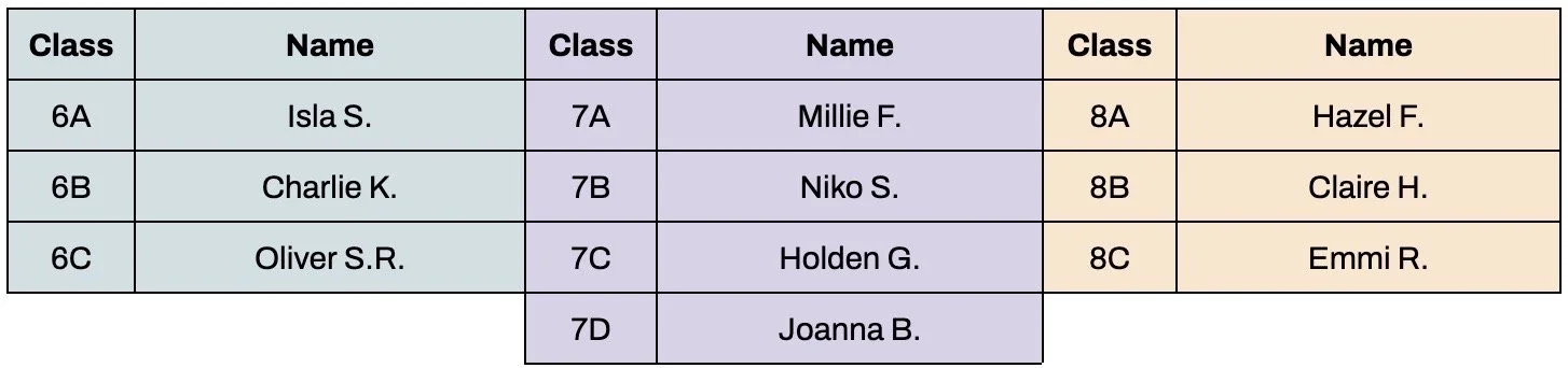 We are excited to announce the students who have been elected as this year’s Grade Level Leads.